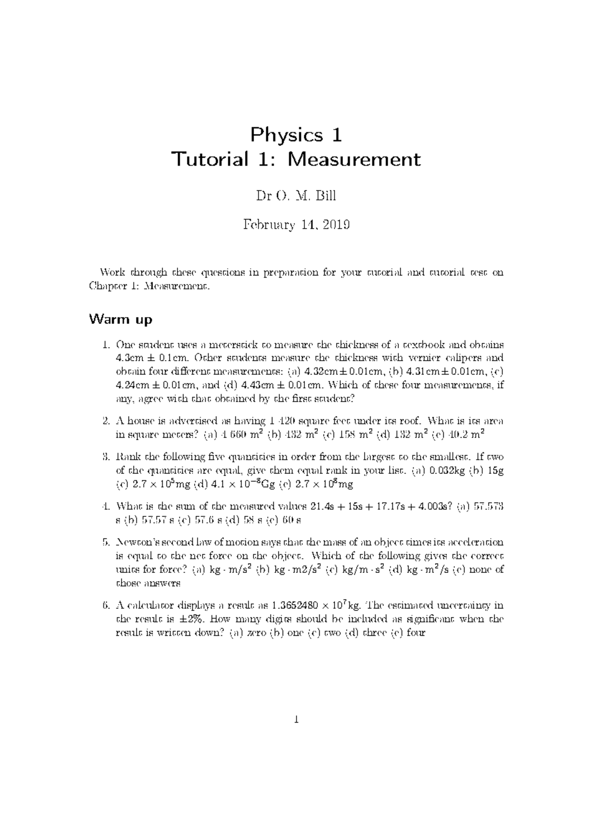 Chapter 1 - Measurement & Problem Set for Physics 1 Tutorial - Studocu