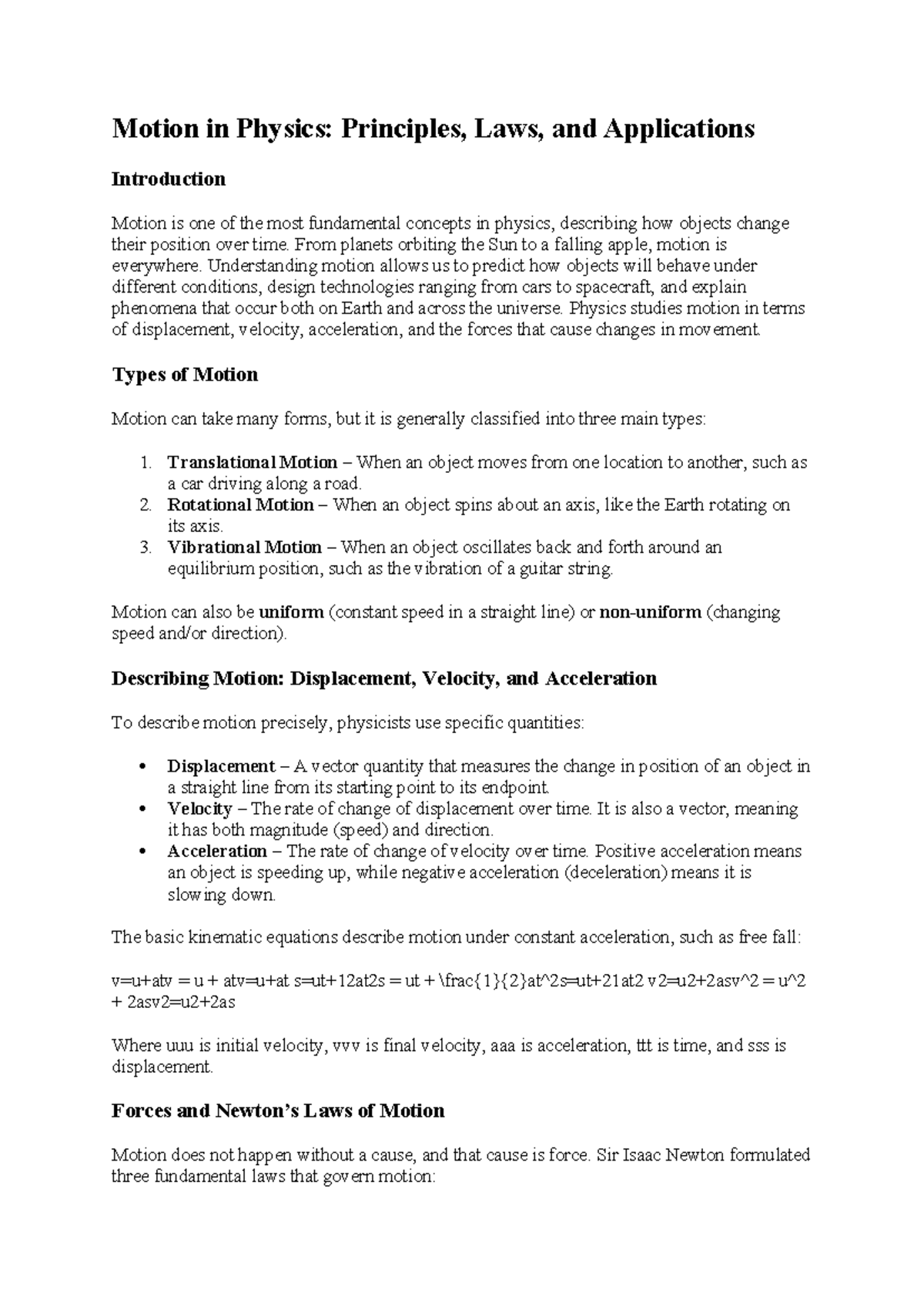 Physics 101: Motion Principles, Laws, and Applications Overview - Studocu