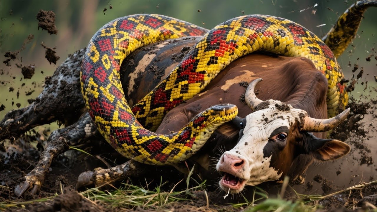 A giant python wrapping a mother cow in the jungle #ytshorts # ...