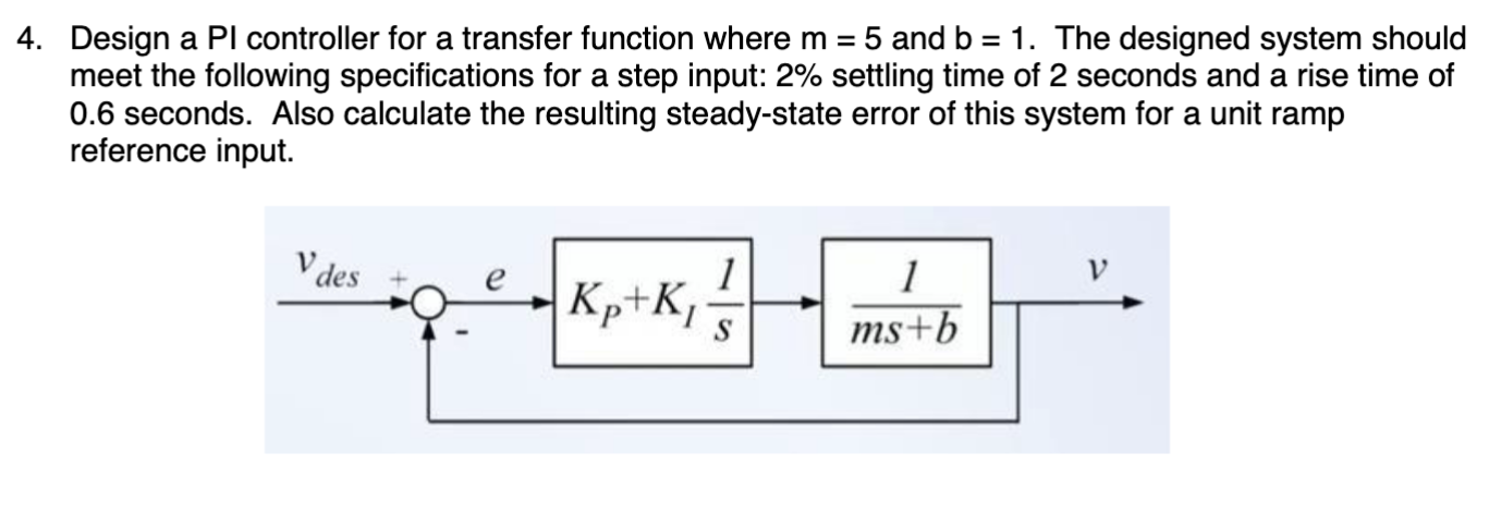 Solved 4. Design a PI controller for a transfer function | Chegg.com