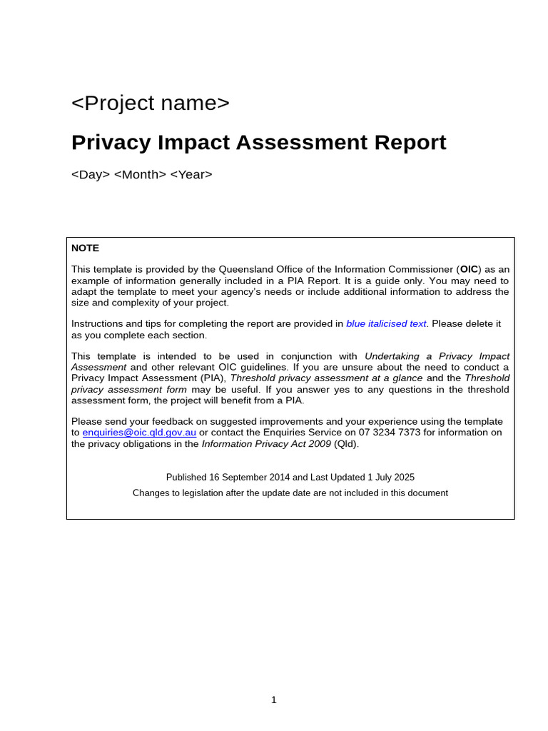 Guideline PIA Report Template | PDF | Information | Privacy