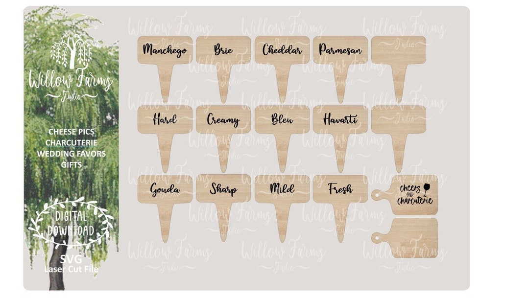 Cheese Picks Cheese Names Script SVG Set of 14 W Cutting Board Tags ...
