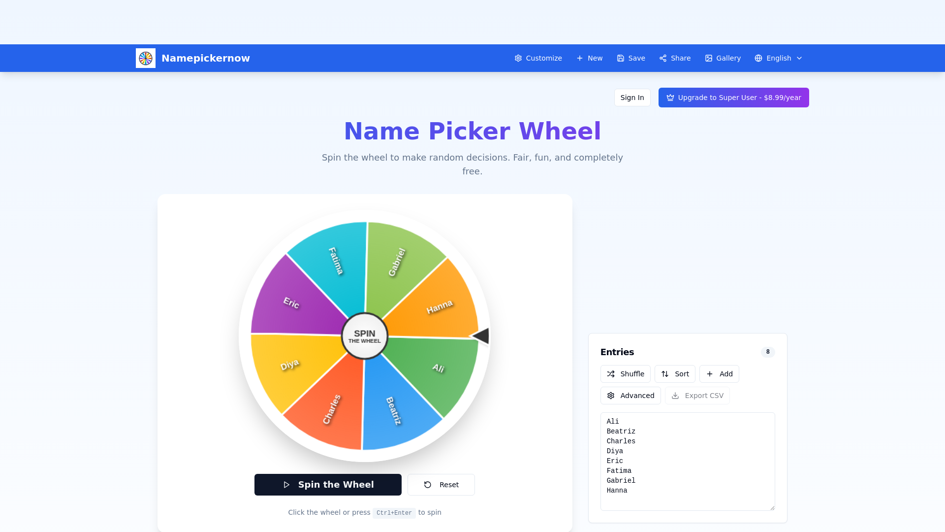 Namepickernow - Spin the Wheel, Pick a Name, Make It Fair