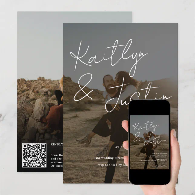 Names script arch blue 4 photo all in one wedding invitation | Zazzle