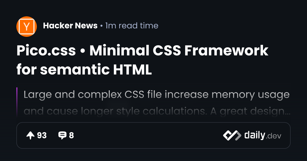 Pico.css • Minimal CSS Framework for semantic HTML | daily.dev