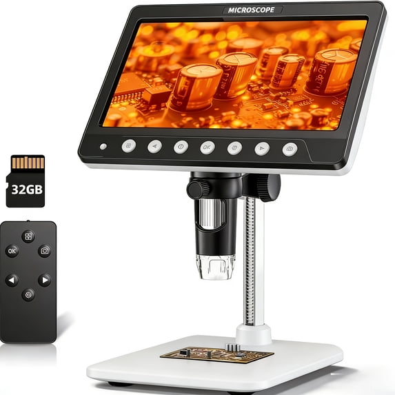 1200X HD Digital Microscope with 6.5" IPS Screen, 1080P, 8 LED Lights ...