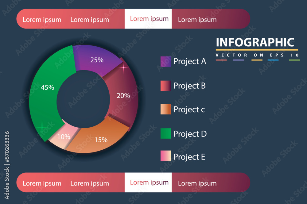 Infographic donut chart, pie chart, with 5 elements project timeline a ...