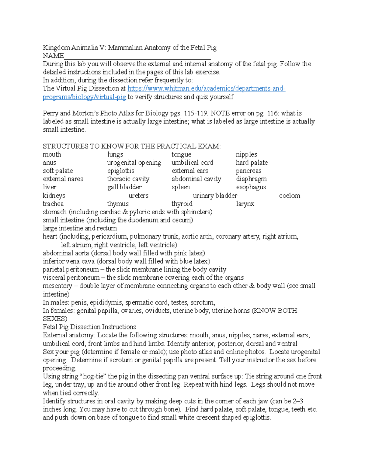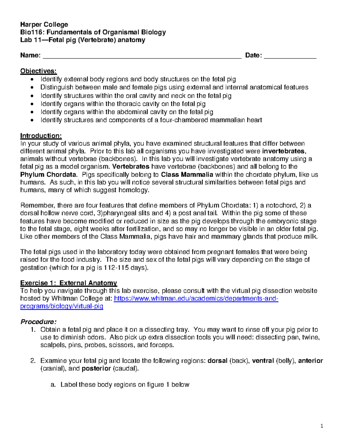 Fetal Pig Lab Word File SP20 - Kingdom Animalia V: Mammalian Anatomy of ...