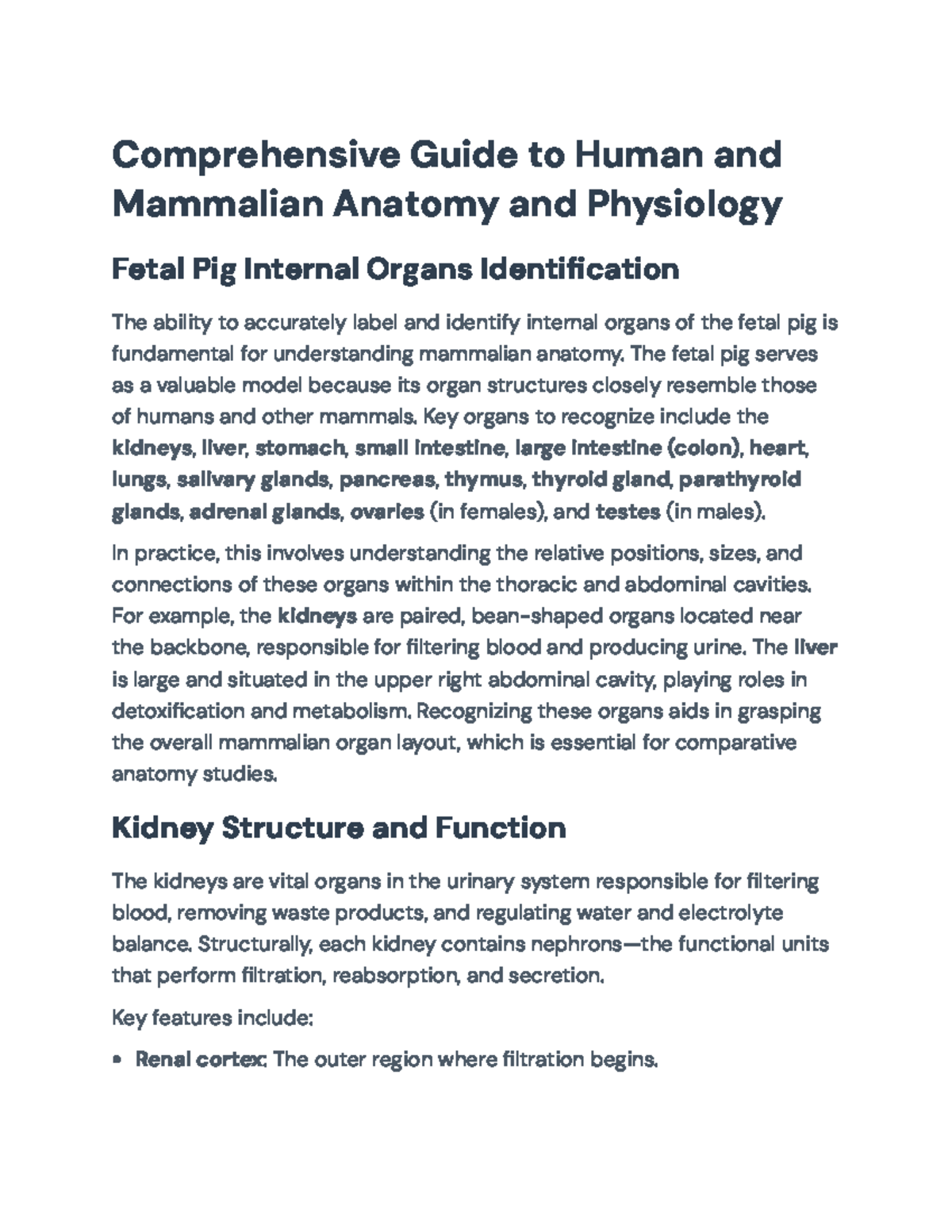 Fetal Pig Anatomy Guide: Structures and Functions Explained | Course Hero