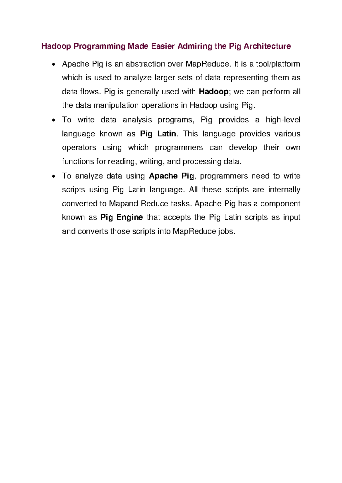 Hadoop Programming: Understanding Apache Pig Architecture (CS101) - Studocu