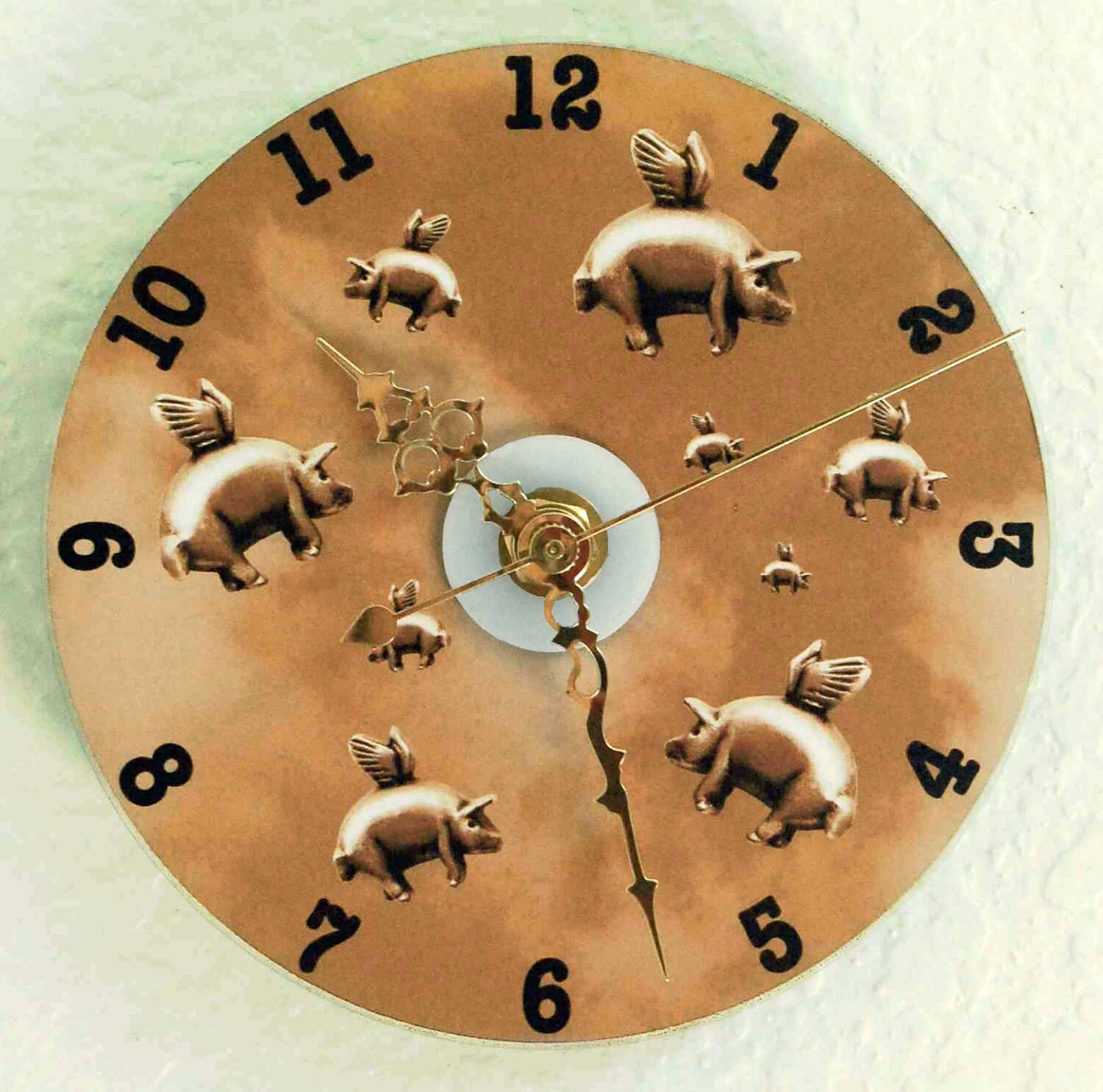 Flying Pigs CD Wall Clock Blue Purple Sepia OR Gray When - Etsy