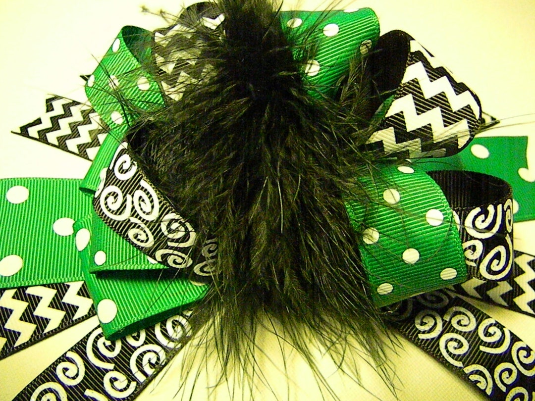 Green & Black Swirl Hair Bow: Pigtail Loop Design - Etsy