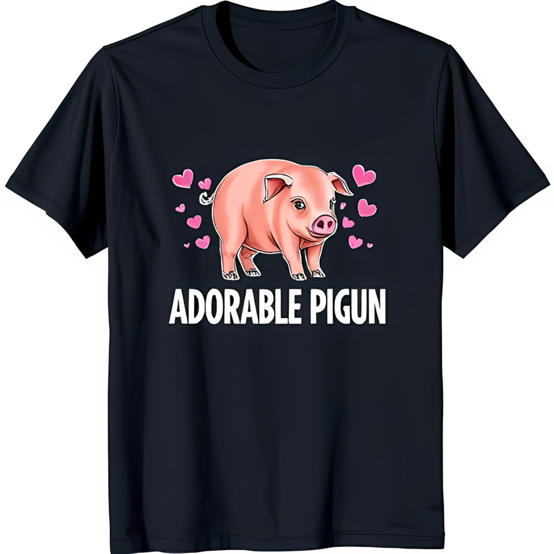 Adorable Pigun Graphic T-Shirt Cute Pig with Pink Hearts on Dark Blue ...
