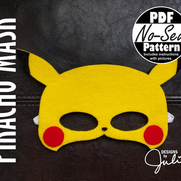 Pikachu No-sew Mask Pattern | Pokemon Party Favor, Pikachu Party Supply ...