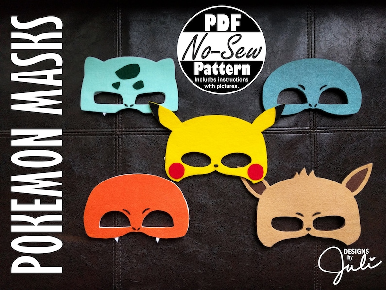 Pokemon Original No-sew Mask Patterns | Pikachu, Charmander, Squirtle ...