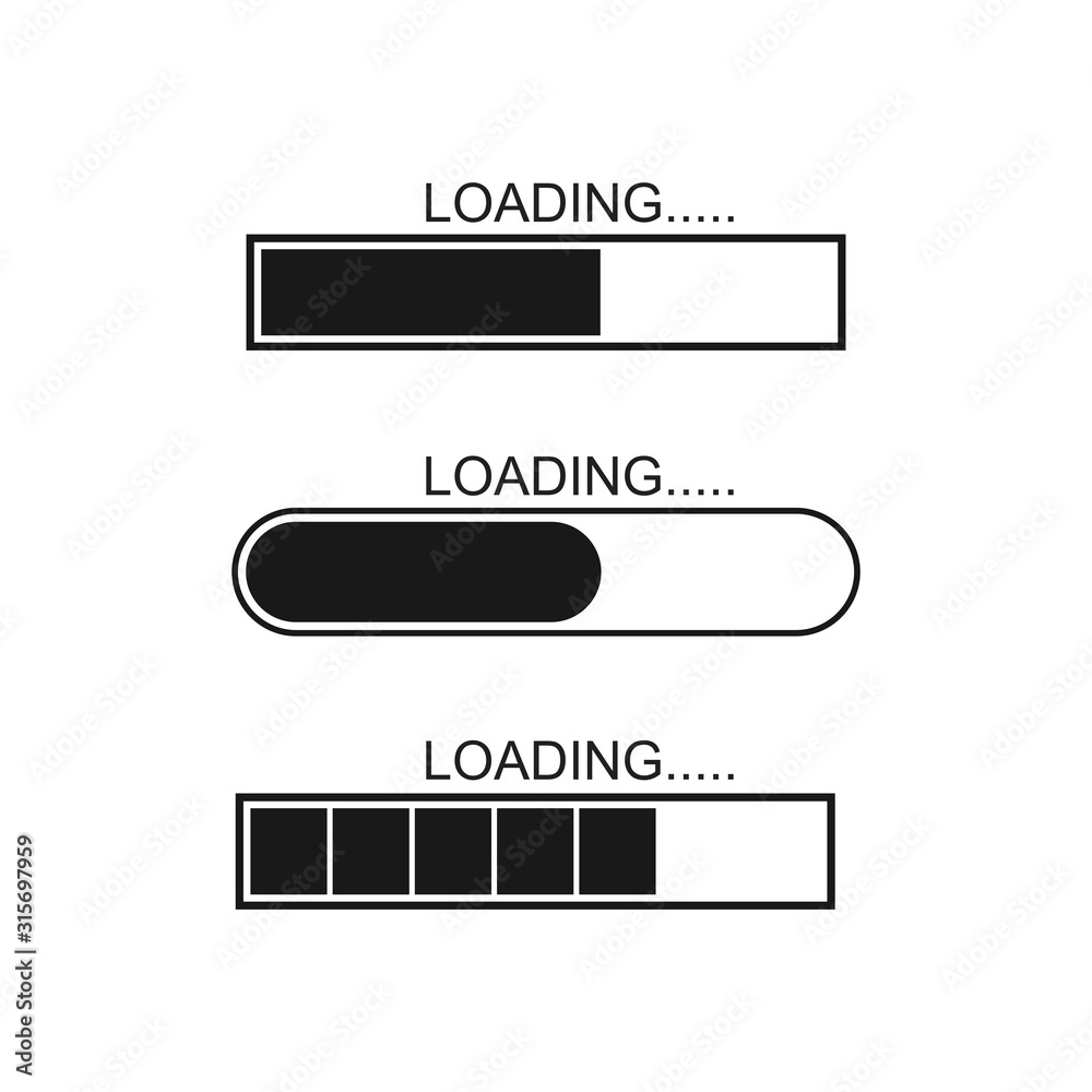 Set of vector loading icons. Flat progress loading bar isolated ...