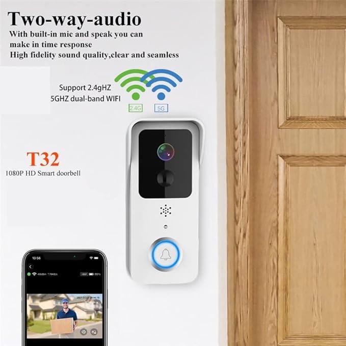 Videoportero Cámara HD Timbre 5G WiFi Doble Impermeable IP54 Pila Hogar ...
