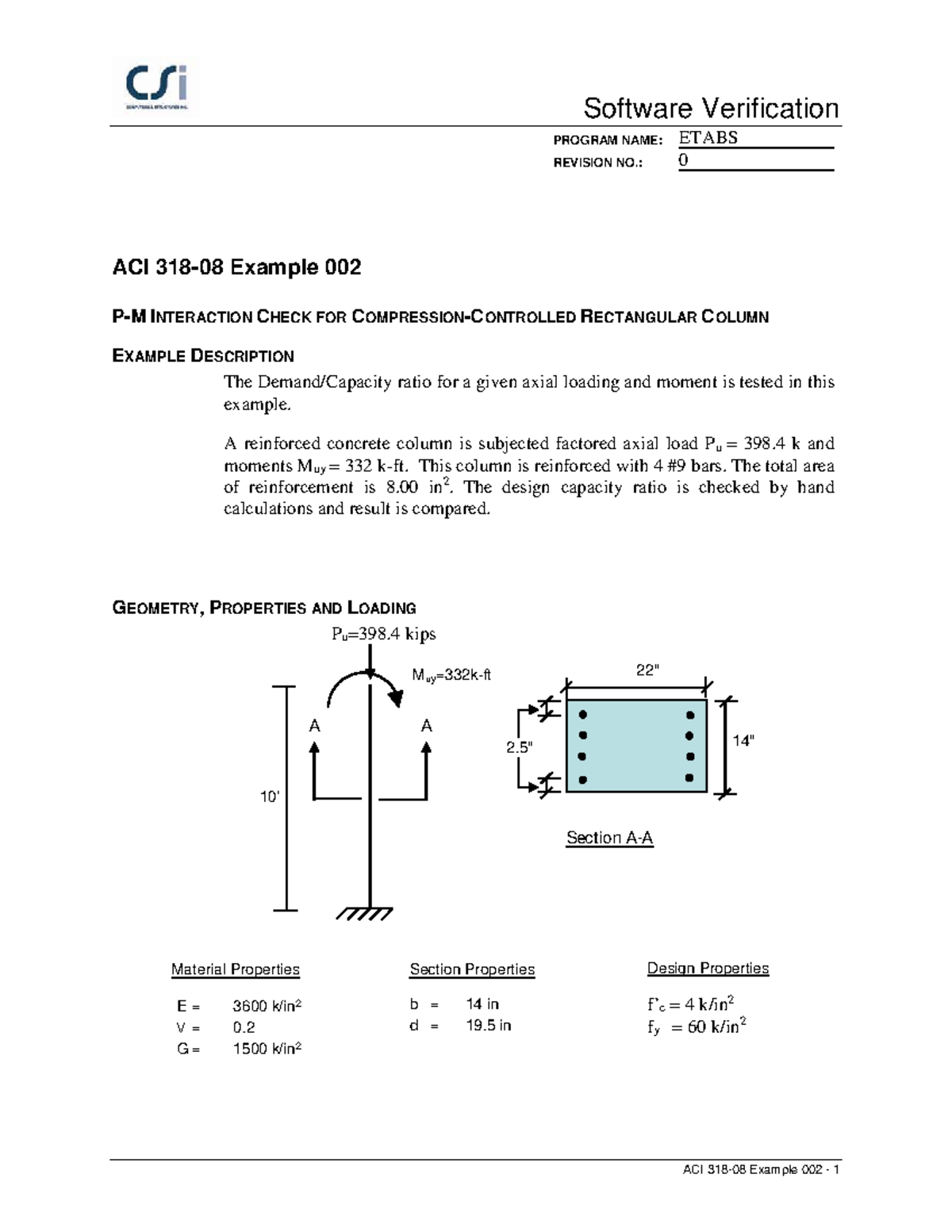 ACI 318-08 Example 002: Software Verification of Column Ratio - Studocu