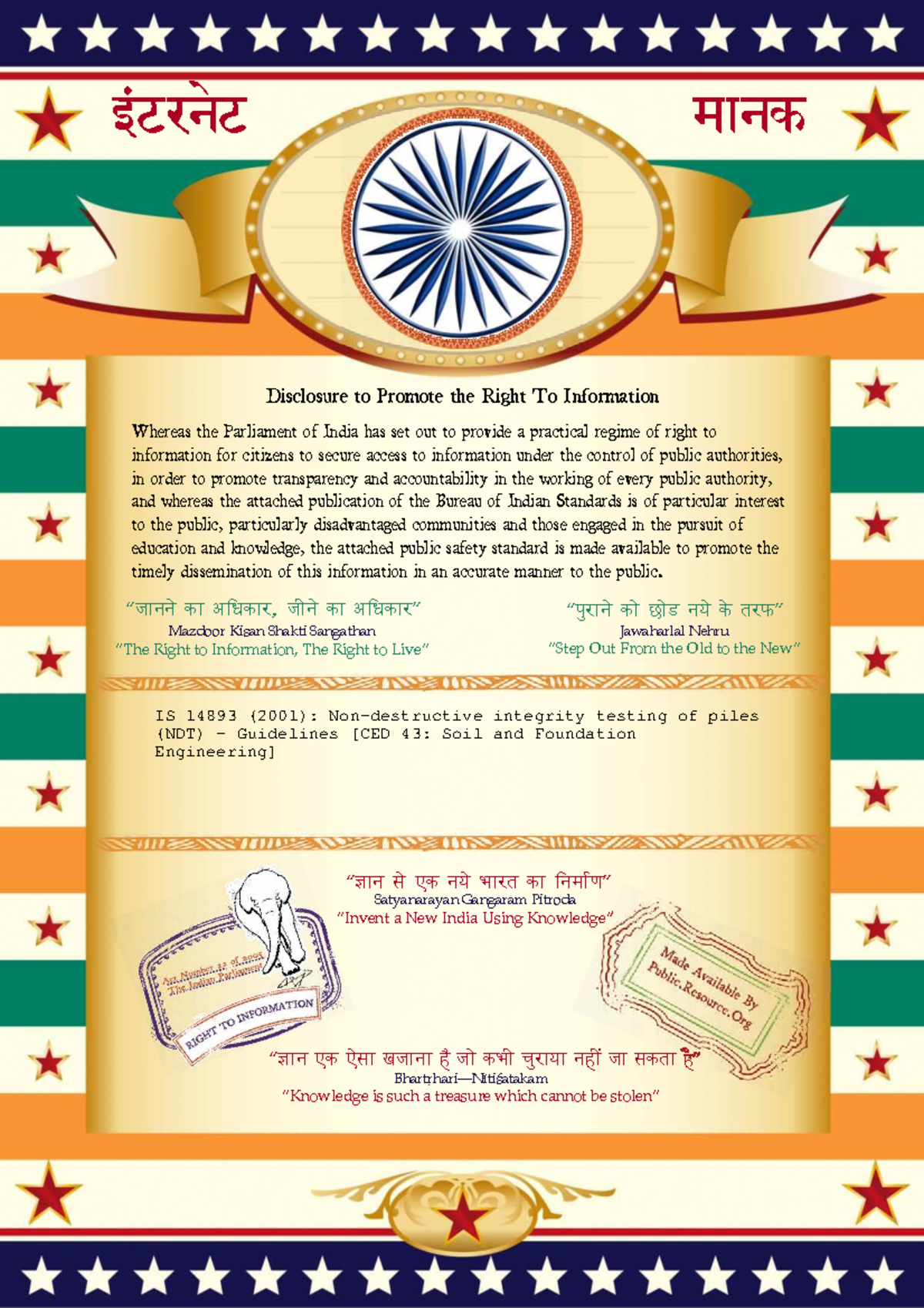 IS 14893:2001 - Guidelines for Integrity Testing of Pile Foundations ...