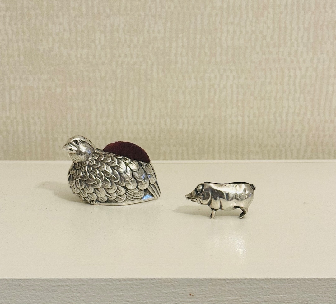 Two Antique Sterling Silver Pins: English Pig Pin and French Quail Pin ...