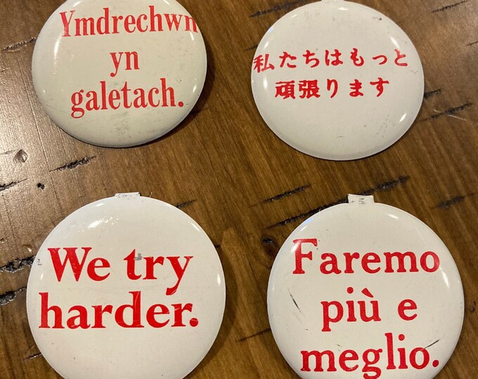 Vintage AVIS "we Try Harder" Pins English, Welsh, Italian, Japanese - Etsy