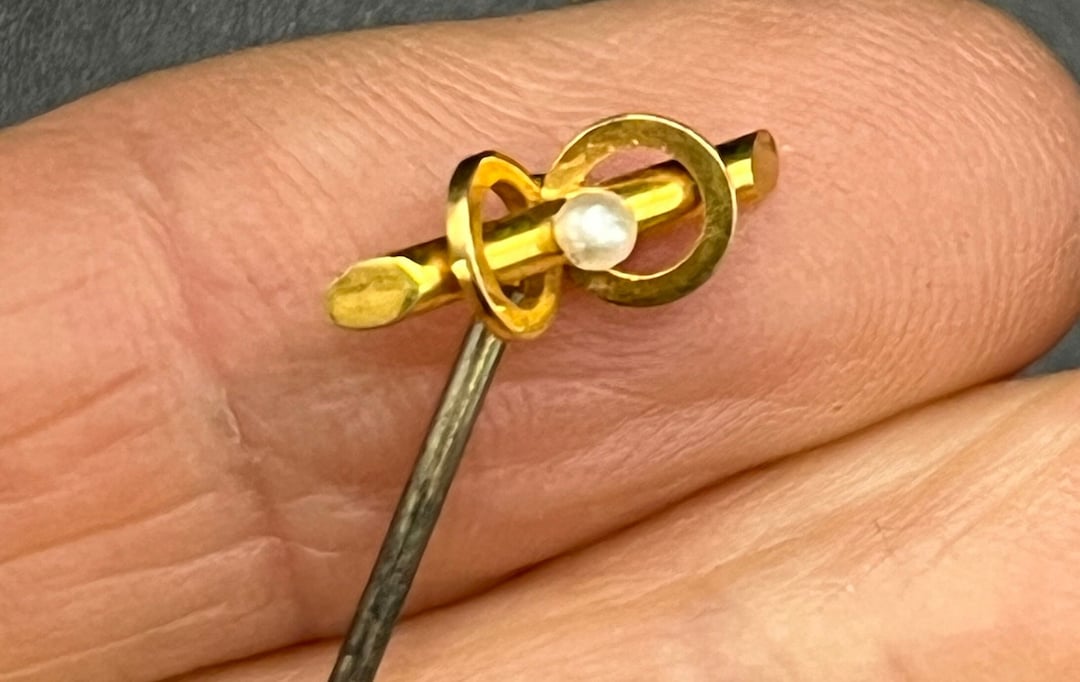 Vintage 9ct Gold Seed Pearl Bar Stick Pin English Tie Pin Circa 1900s ...