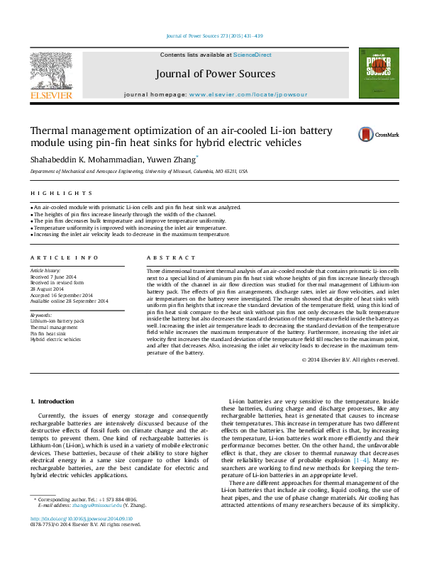 (PDF) Thermal management optimization of an air-cooled Li-ion battery ...