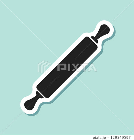Rolling pin sticker icon in flat style. Cooking...のイラスト素材 [129549597 ...