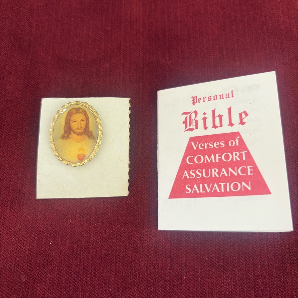 Vintage Jesus Christ Sacred Heart Brooch Pin+ Mini Bi… - Gem