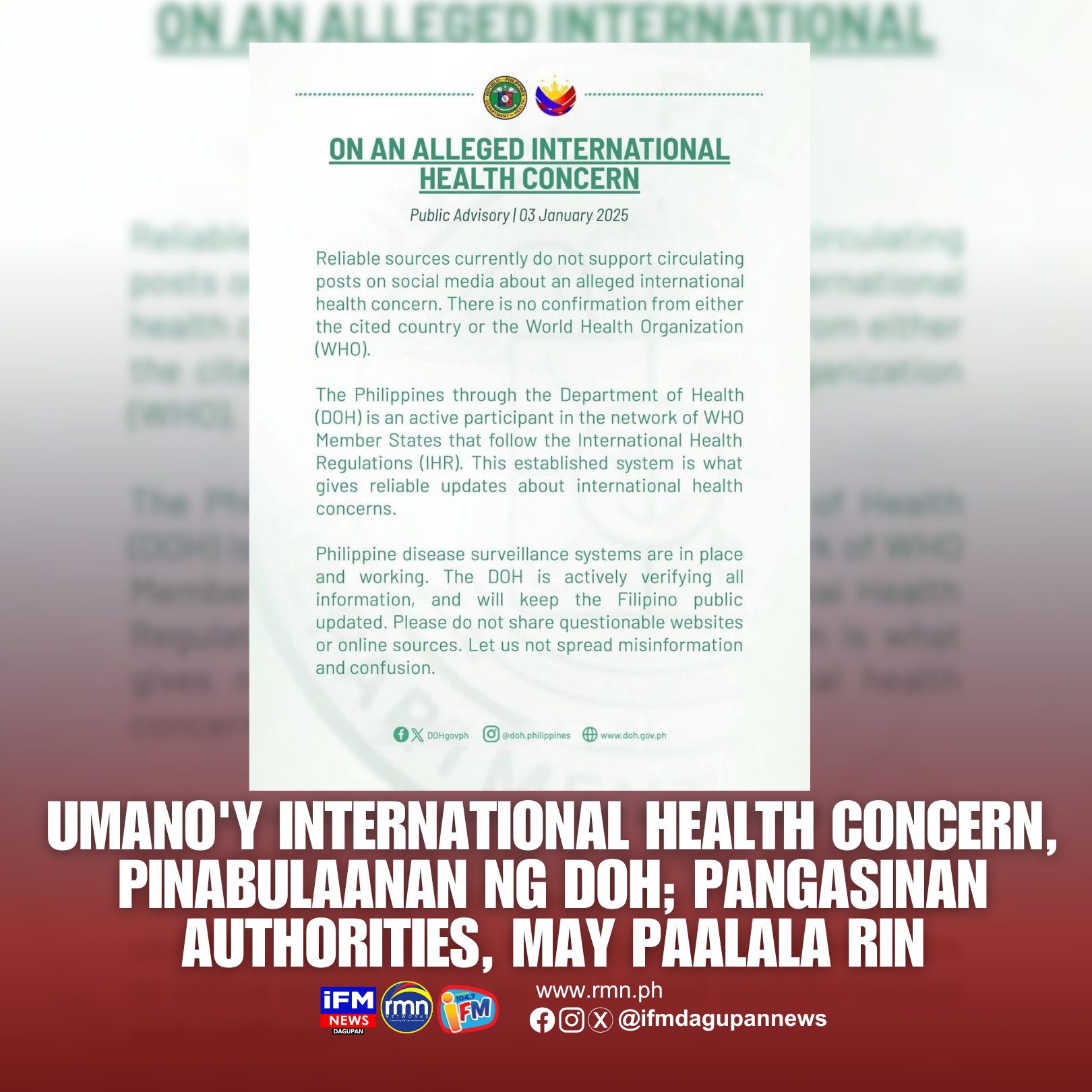 UMANO'Y INTERNATIONAL HEALTH CONCERN, PINABULAANAN NG DOH; PANGASINAN ...