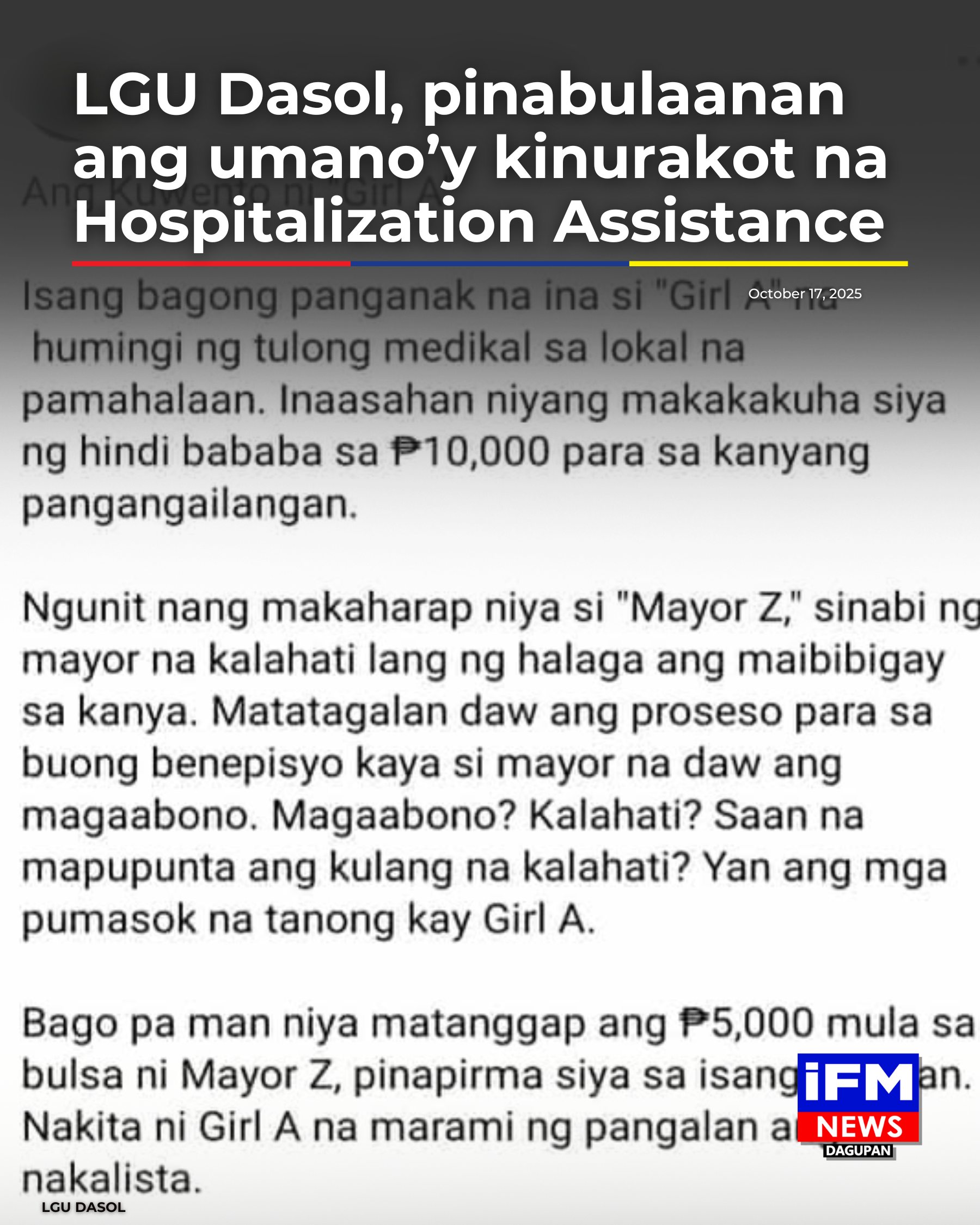 LGU DASOL, PINABULAANAN ANG UMANO'Y KINURAKOT NA HOSPITALIZATION ...