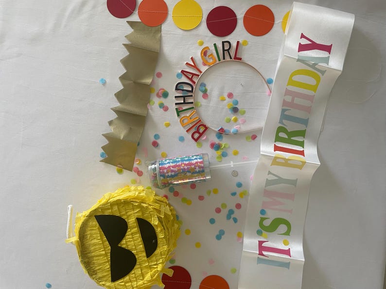 Curated Birthday Gift Set Mini Piñata, Tiara & Sash, Garland, Confetti ...