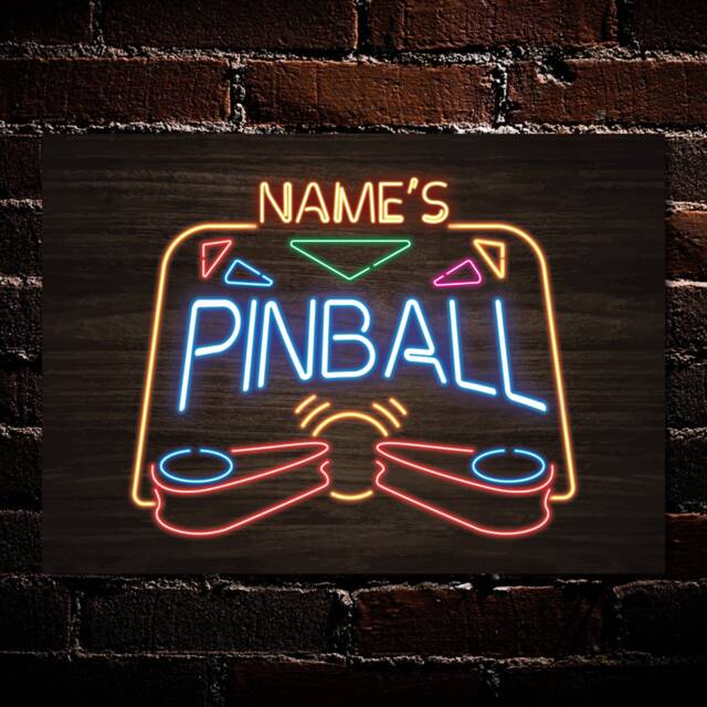 Personalised Pinball Sign, Neon Style Wall Decor Gift Metal Plaque by ...