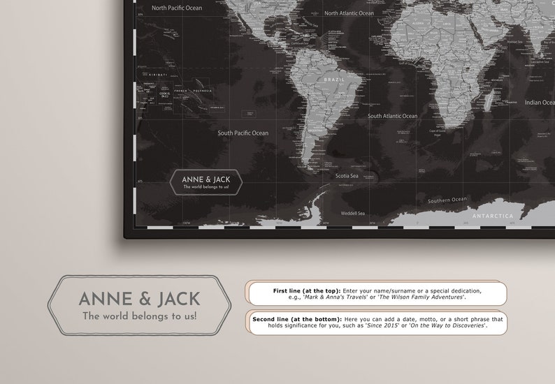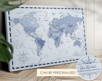 Personalized World Map Push Pin Map Pinboard Cork Canvas - Etsy