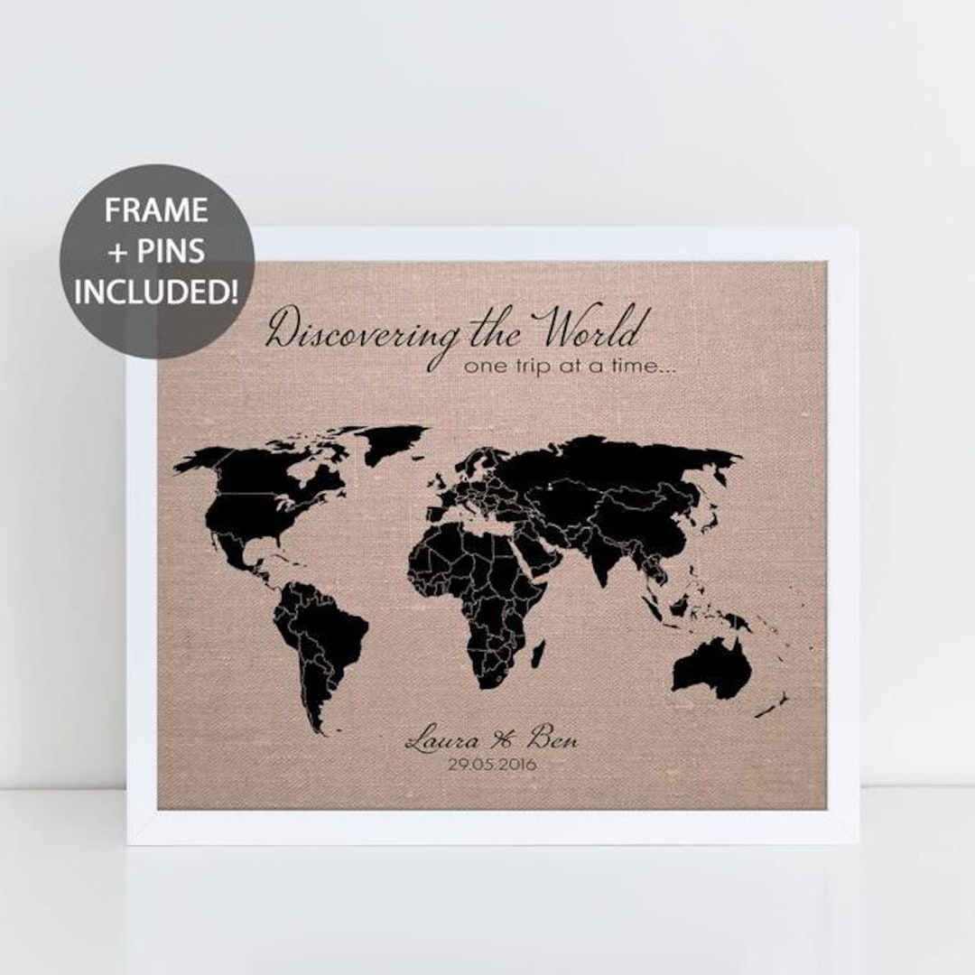Personalized World Map Push Pin Map Pinboard Cork Canvas - Etsy UK