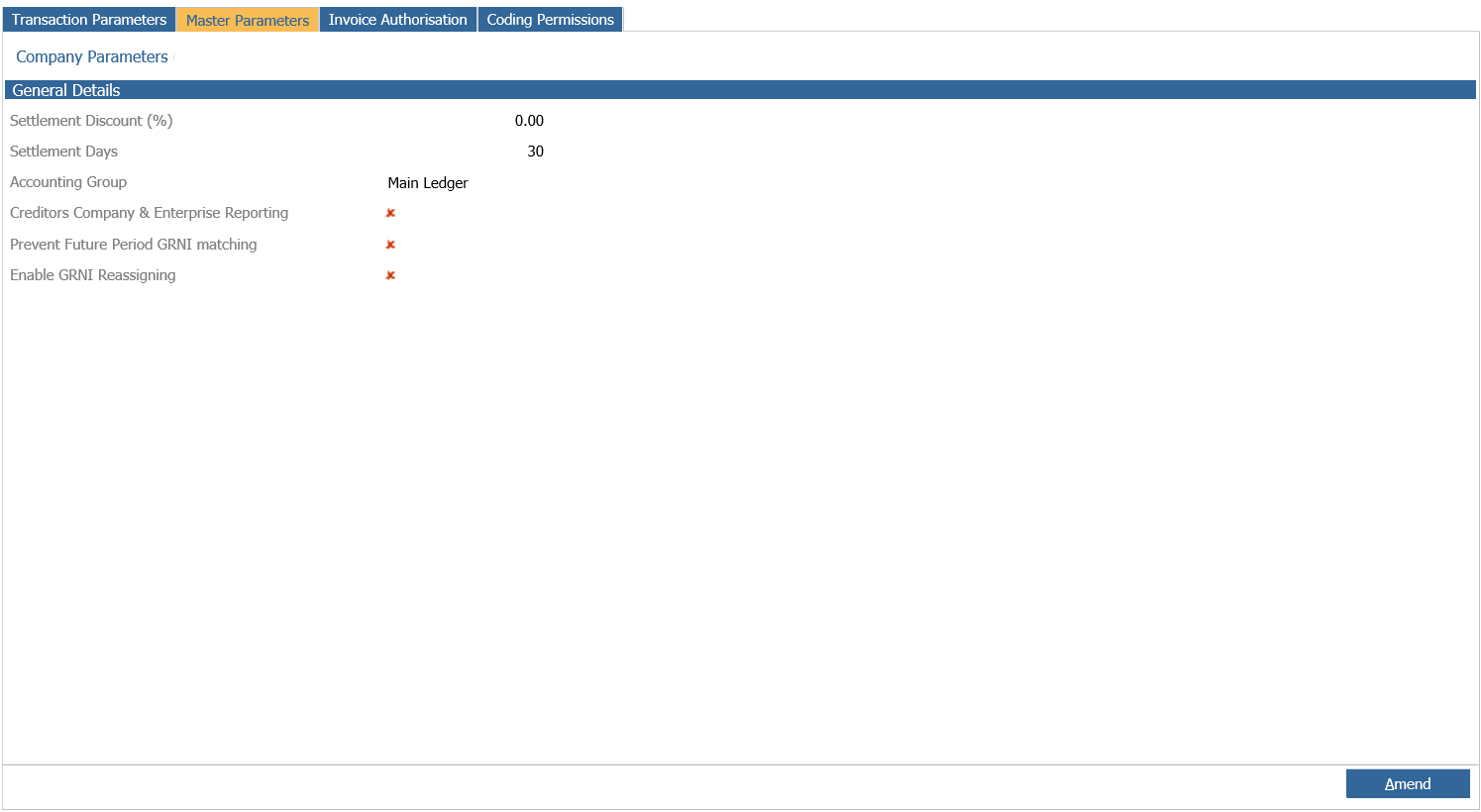 π Purchase Ledger Parameters β Pinewood Technologies PLC