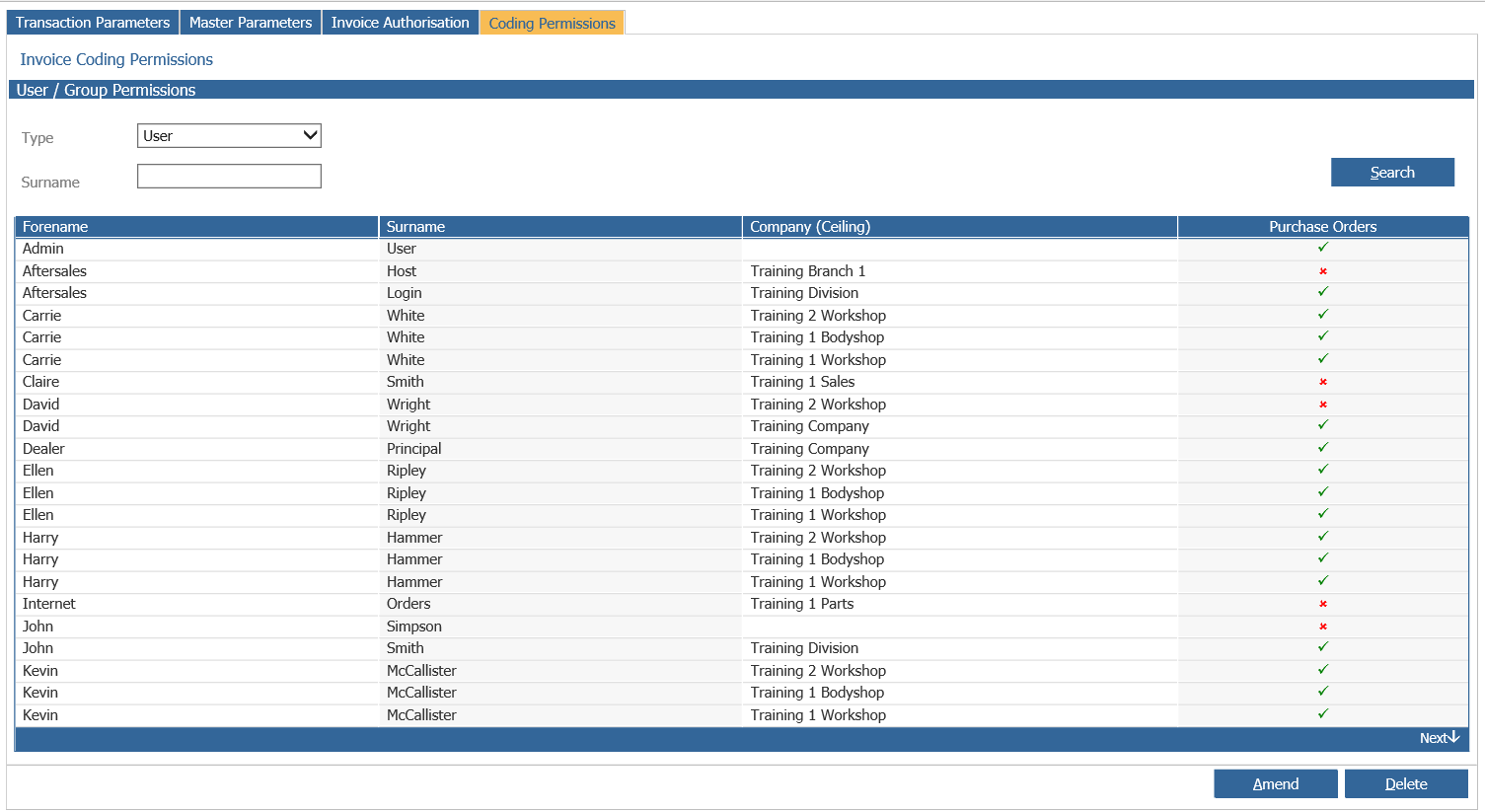 π Purchase Orders Parameters and Permissions β Pinewood Technologies PLC