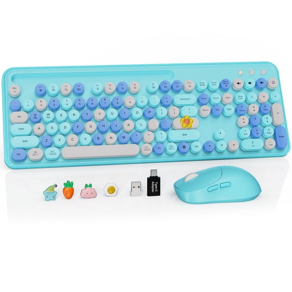 Colorful Wireless And Mouse Combo 2.4ghz Retro Cute Round Keycaps 104 ...