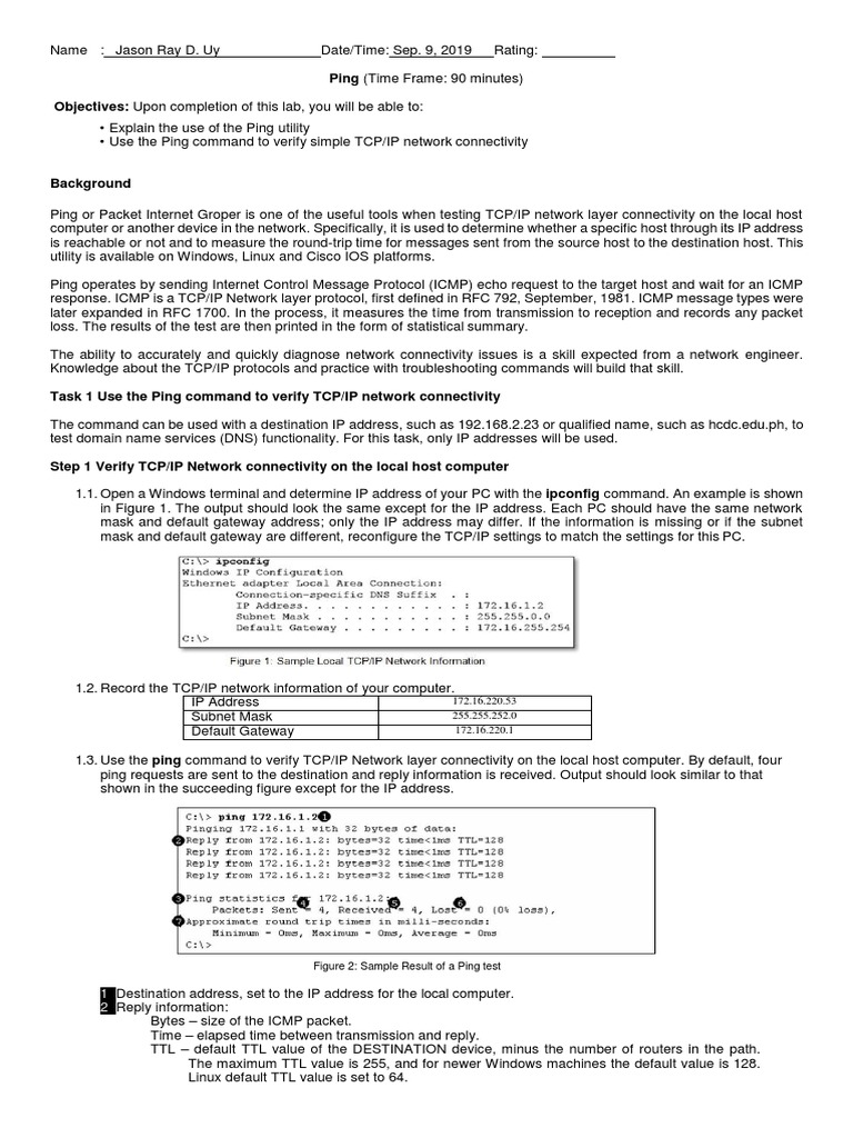 Ping (Time Frame: 90 Minutes) Objectives: Upon Completion of This Lab ...
