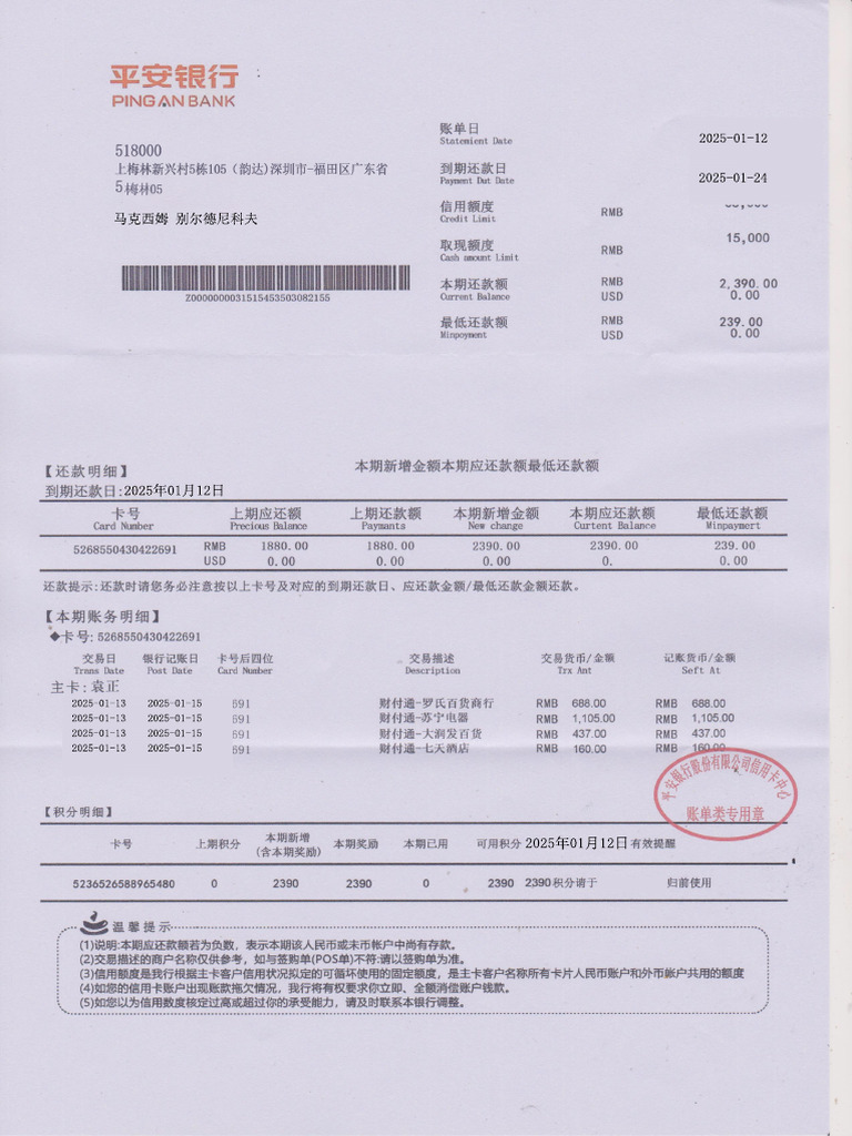Pingan-bank-credit-card-statement | PDF