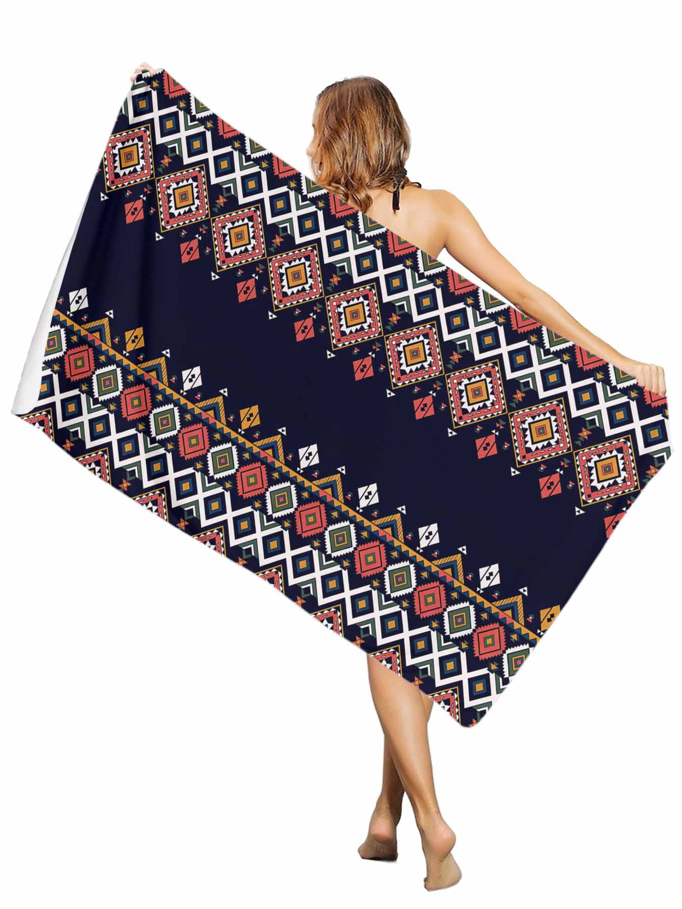 Beach Towel Pink Yellow Aztec Boho Bath Pool Towels Tribal Geometric ...