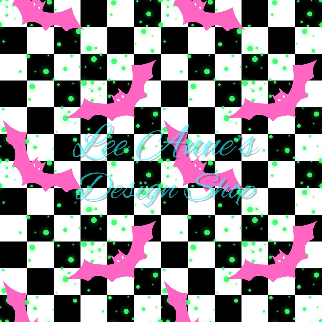 Bats Pink Checkered Seamless Pattern Files for Halloween Girly Fabric ...