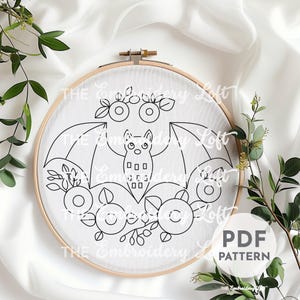 Pink Floral Bat Hand Embroidery Pattern, Cute Pink Bat Embroidery ...