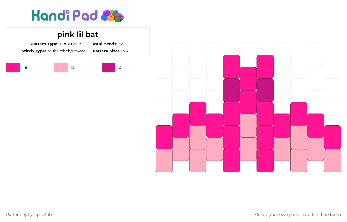 Pink lil bat Pony Bead Pattern - Kandi Pad | Kandi Patterns, Fuse Bead ...