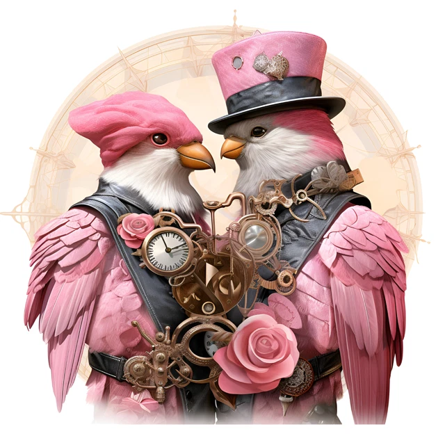 DOPASTICKER Steampunk Love Birds Sticker Love Pink Gear Victorian ...