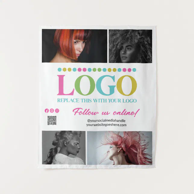 Pink Your Logo Photos QR Code Social Media Promo Tapestry | Zazzle