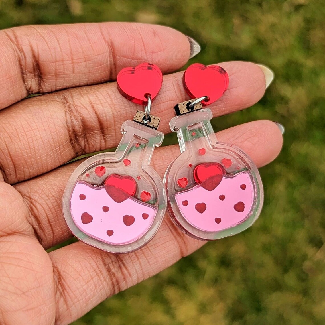 Love Potion Earrings, Valentine's Day, Gift for Her, Pink Elixir, Red ...