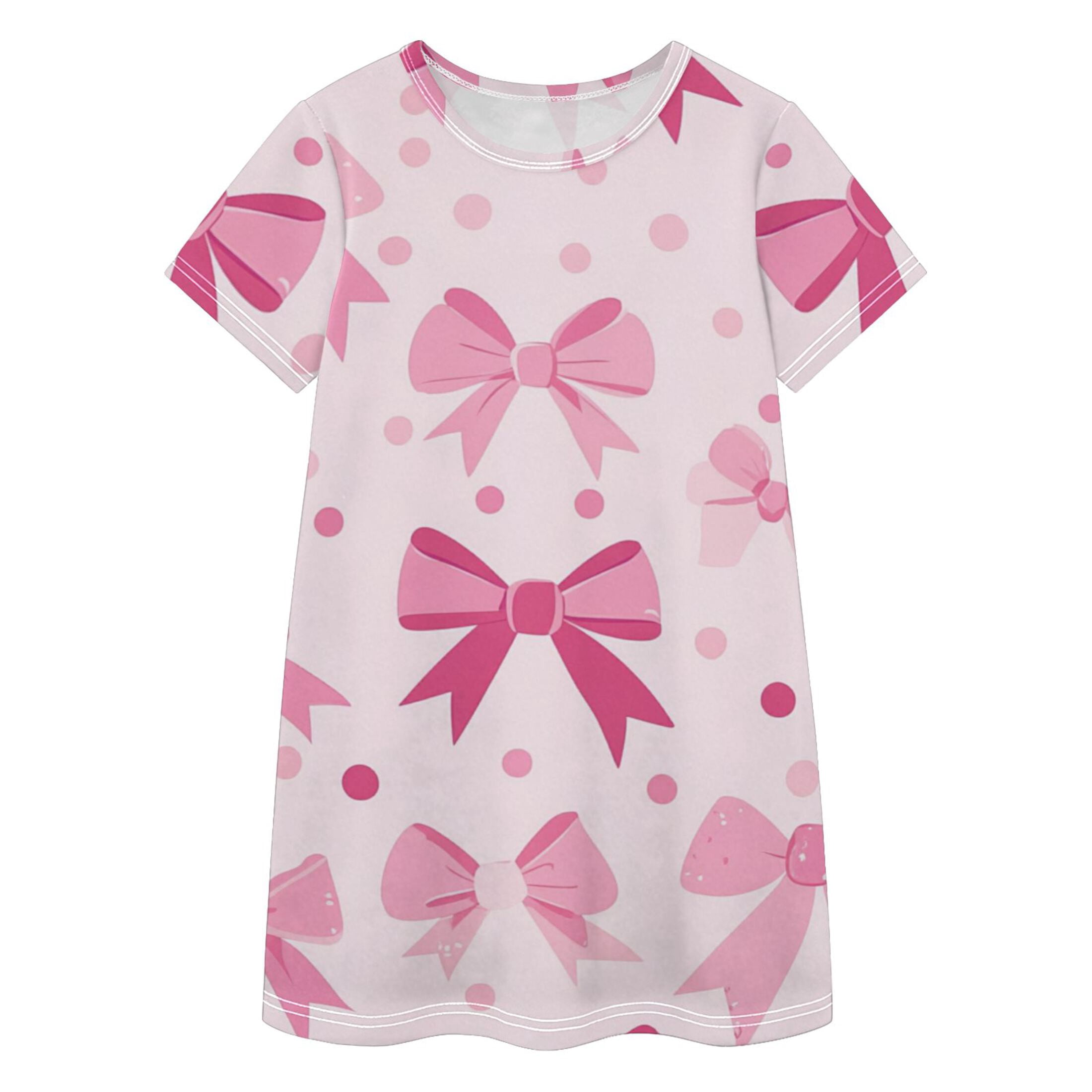 BZSMCE Short Sleeve dress Dress Casual Cotton Dresses-Pink Bowknot ...
