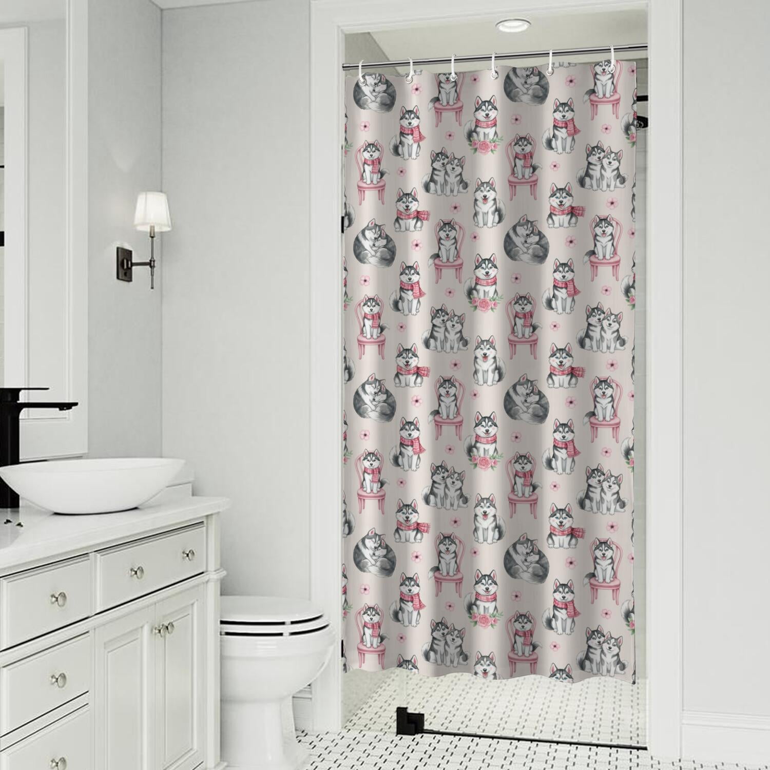 Basics Bathroom Shower Curtain, Water Resistant Fabric with Grommets ...