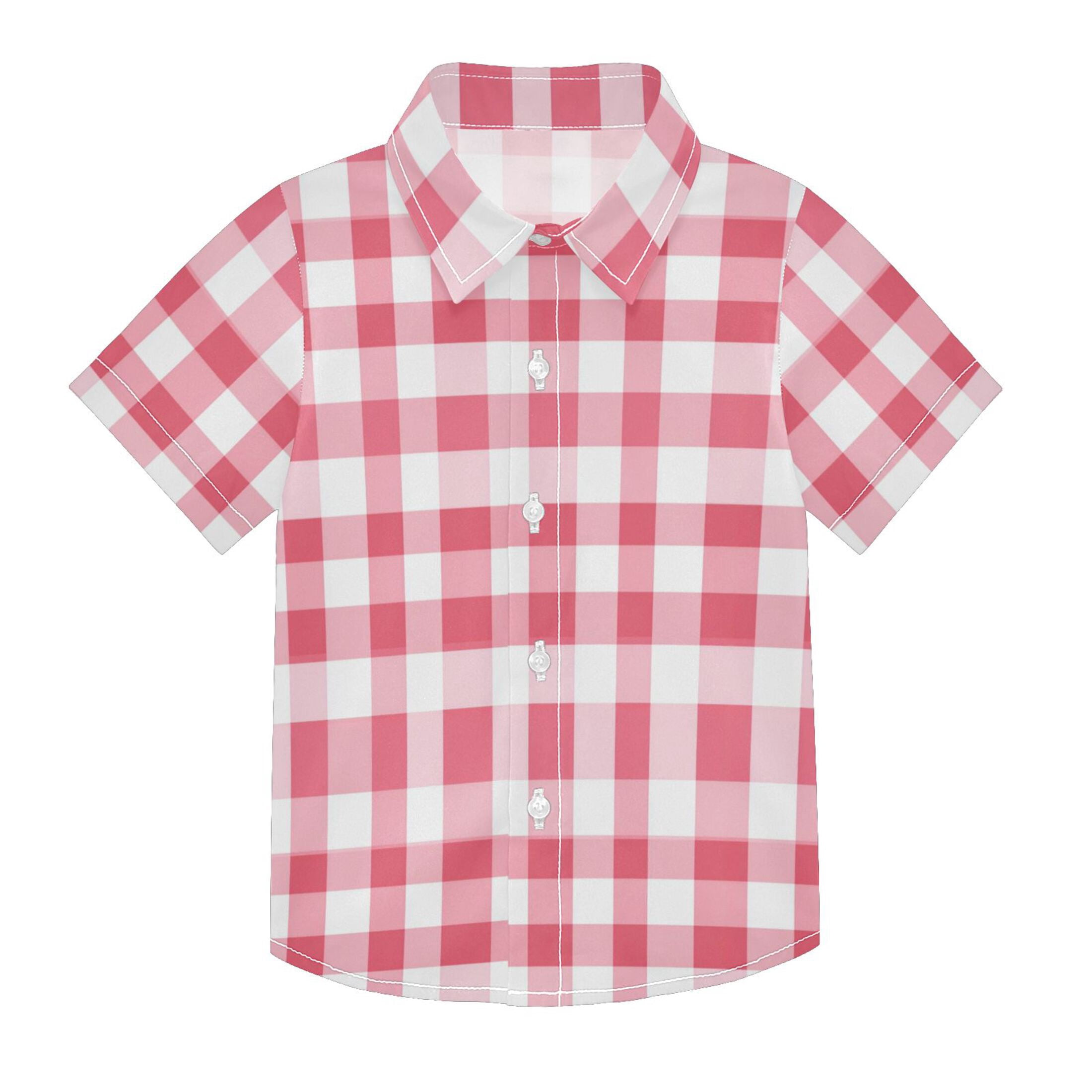 Boys Button-Down Shirt Short Sleeve Shirt Tops for 7-8Y Pink Checkered ...